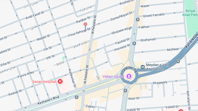 آدرس : تهران، خیابان فلسطین شمالی، پایین تر از زرتشت، کوچه فیروز دهقان، پلاک هشت، واحد دو